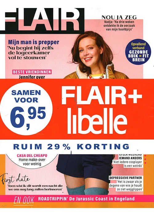 Flair: Met Flair zit je lekker in je vel! In dit magazine vind je betaalbare mode, makkelijke recepten en praktische tips voor in en rond het huis. Ook geniet je van de herkenbare columns, eerlijke interviews met bekende Nederlanders en leef je mee met de real life verhalen van lezeressen.