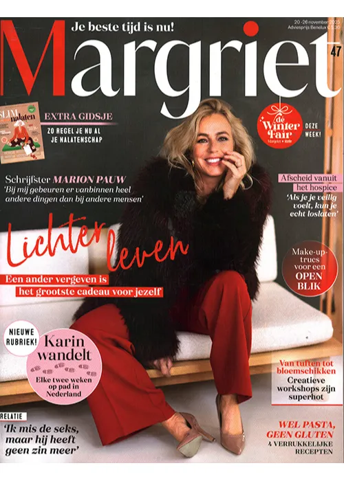 In het tijdschrift Margriet lees je alles over gezond en gelukkig ouder worden. Geniet elke week van persoonlijke verhalen, lekkere recepten, praktische tips om gezond te leven en herkenbare columns van onder andere Aaf Brandt Corstius en Marjan van den Berg. Met Margriet sta je midden in het leven!