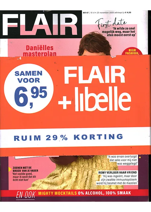 Flair: Met Flair zit je lekker in je vel! In dit magazine vind je betaalbare mode, makkelijke recepten en praktische tips voor in en rond het huis. Ook geniet je van de herkenbare columns, eerlijke interviews met bekende Nederlanders en leef je mee met de real life verhalen van lezeressen.