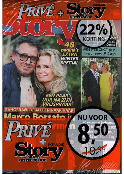 Story: Story brengt iedere week het allerlaatste nieuws over ons koningshuis en Nederlandse en internationale showbizz. Met iedere week de meest onthullende verhalen en exclusieve foto´s. En wekelijks een gratis puzzelbijlage! Als u een abonnement neemt op Story bent u steeds volledig op de hoogte. Story, elke week het meeste nieuws. Nog meer nieuws en leuke aanbiedingen vindt u op www.story.nl. Bestel jouw Story snel & eenvoudig bij Magvilla.