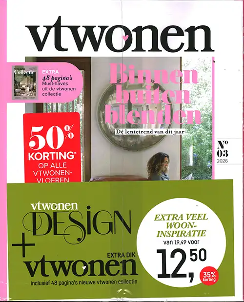Vtwonen: Vtwonen is hét woonmagazine van Nederland en biedt voor een mooie en leefbare woning. In elk nummer kun je de nieuwste trends, tips en trucs van stylisten lezen om aan de slag te gaan. Neem een kijkje in inspirerende huizen om zo jezelf te inspireren om van je eigen huis je droom huis te maken.