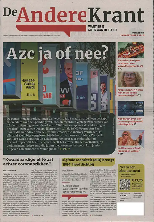 De Andere Krant brengt artikelen met actueel nieuws, met achtergronden, columns, interviews en met opinie. Daarnaast gaat aandacht uit naar positieve ontwikkelingen.
