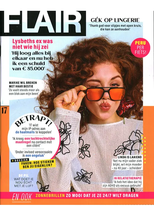 Met Flair zit je lekker in je vel! In dit magazine vind je betaalbare mode, makkelijke recepten en praktische tips voor in en rond het huis. Ook geniet je van de herkenbare columns, eerlijke interviews met bekende Nederlanders en leef je mee met de real life verhalen van lezeressen.