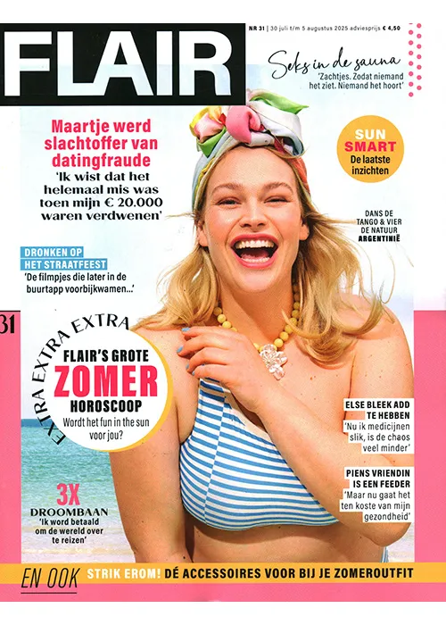 Met Flair zit je lekker in je vel! In dit magazine vind je betaalbare mode, makkelijke recepten en praktische tips voor in en rond het huis. Ook geniet je van de herkenbare columns, eerlijke interviews met bekende Nederlanders en leef je mee met de real life verhalen van lezeressen.