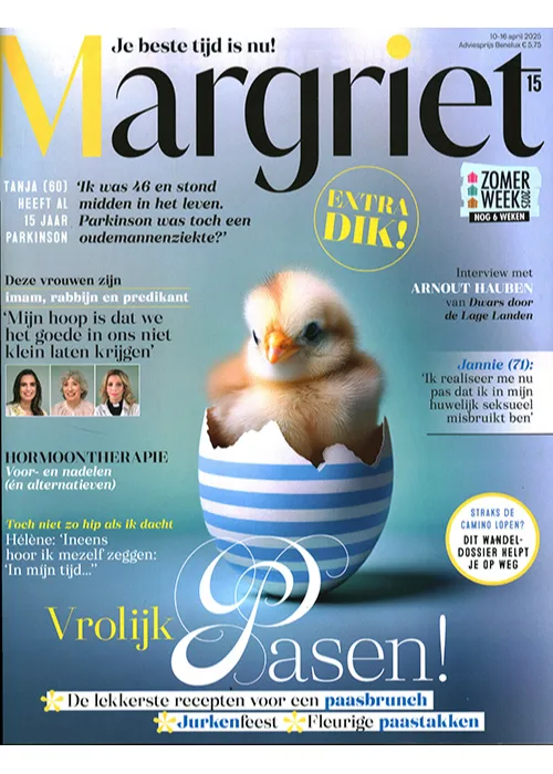 In het tijdschrift Margriet lees je alles over gezond en gelukkig ouder worden. Geniet elke week van persoonlijke verhalen, lekkere recepten, praktische tips om gezond te leven en herkenbare columns van onder andere Aaf Brandt Corstius en Marjan van den Berg. Met Margriet sta je midden in het leven!