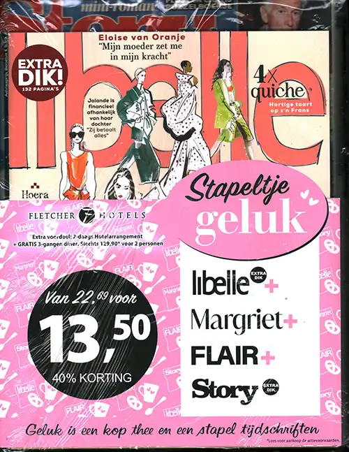Geluk is een kop thee en een stapel tijdschriften. In dit tijdschriften pakket Stapeltje Geluk krijg je de nieuwste edities van de Libelle, Margriet, Flair & Story. Deze 4 nu allemaal in 1 pakket met een flink voordeel.