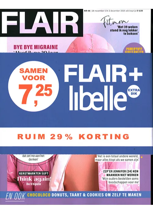 Flair: Met Flair zit je lekker in je vel! In dit magazine vind je betaalbare mode, makkelijke recepten en praktische tips voor in en rond het huis. Ook geniet je van de herkenbare columns, eerlijke interviews met bekende Nederlanders en leef je mee met de real life verhalen van lezeressen.