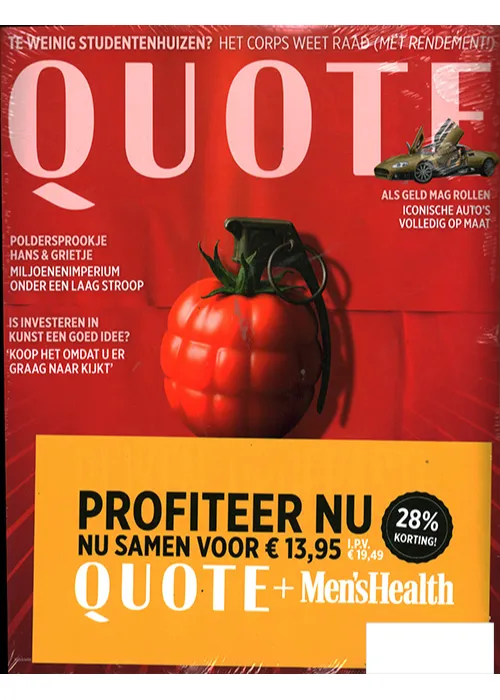 Quote: Quote is hét tijdschrift voor iedereen die geïnteresseerd is in de stand van zaken in het Nederlandse bedrijfsleven. Quote bericht elke maand over ondernemers in de zakenwereld, mensen met geld, carrière en het leven aan de top. Lezers zijn ondernemers of ondernemend. Quote maakt dromen waar, stimuleert ondernemerschap en brengt mensen uit de zakenwereld met elkaar in contact. Niet voor niets luidt het motto ‘Denk groot, lees Quote’. Men’sHealth: De Men’s Health Magazine is voor actieve, succesvolle, goed opgeleide en welstandige mannen tussen de 25 en 45 jaar, die een bewust, fit en gezond leven (willen) leiden. Belangrijkste pijlers zijn fitness, sex, gezondheid, voeding, psyche en stijl.