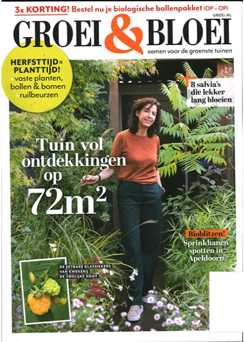 Groei & Bloei is het leukste magazine voor iedereen met groene vingers. Het tijdschrift staat boordevol met tips en inspiratie, zodat jij je tuin kan omtoveren tot een bloemen- en plantenparadijs met zoemende bijen en kleurige vlinders.