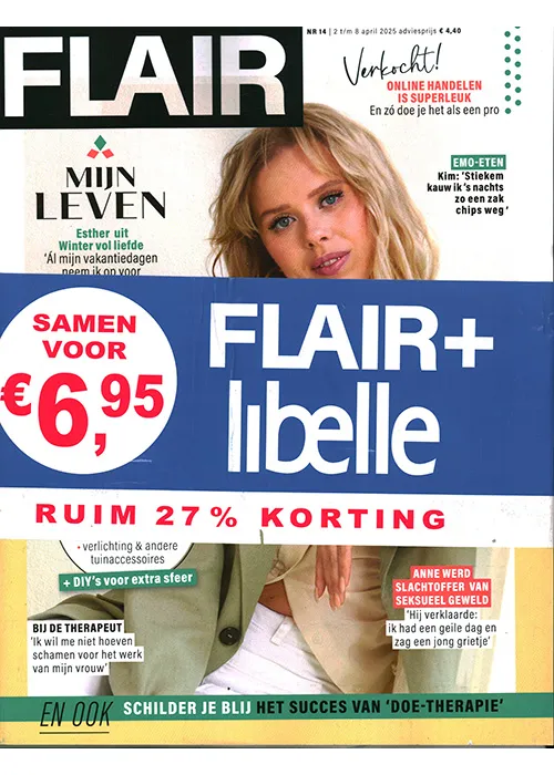 Flair: Met Flair zit je lekker in je vel! In dit magazine vind je betaalbare mode, makkelijke recepten en praktische tips voor in en rond het huis. Ook geniet je van de herkenbare columns, eerlijke interviews met bekende Nederlanders en leef je mee met de real life verhalen van lezeressen.