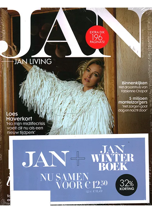 Pakket bestaande uit een editie van Jan en een editie van Jan Living. Jan: Jan glossy is het nieuwe lijfblad voor 30+ vrouwen met een overvol, superdruk, fantastisch en soms ingewikkeld bestaan. Jan is een unieke combinatie van mode, beauty, opvoeden, psychologie, culinair, geld en werk. Dankzij deze unieke combinatie werd Jan uitgeroepen tot het eerste no-nonsens glossy magazine van Nederland. Jan Living: Lees de leukste interieur nieuwtjes, doe wooninspiratie op voor je eigen interieur en kijk binnen in de mooiste huizen in JAN’s binnenkijkers.